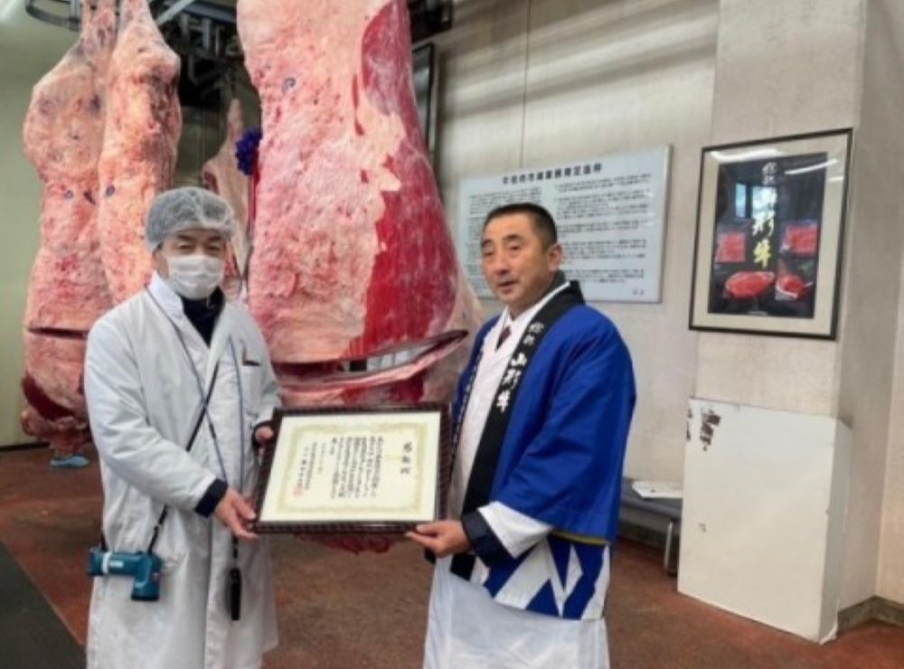 山形県食肉公社で開催された第17回山形セレクション牛枝肉共進会にて、1キロ当たり7,312円でチャンピオン牛を落札しました。