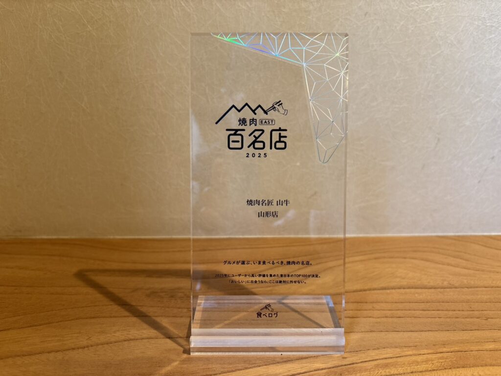 グルメサイト「食べログ」が発表する、いま訪れたい100店を選出した「焼肉百名店 EAST 2025」に「焼肉名匠 山牛 山形店」が選出されました。